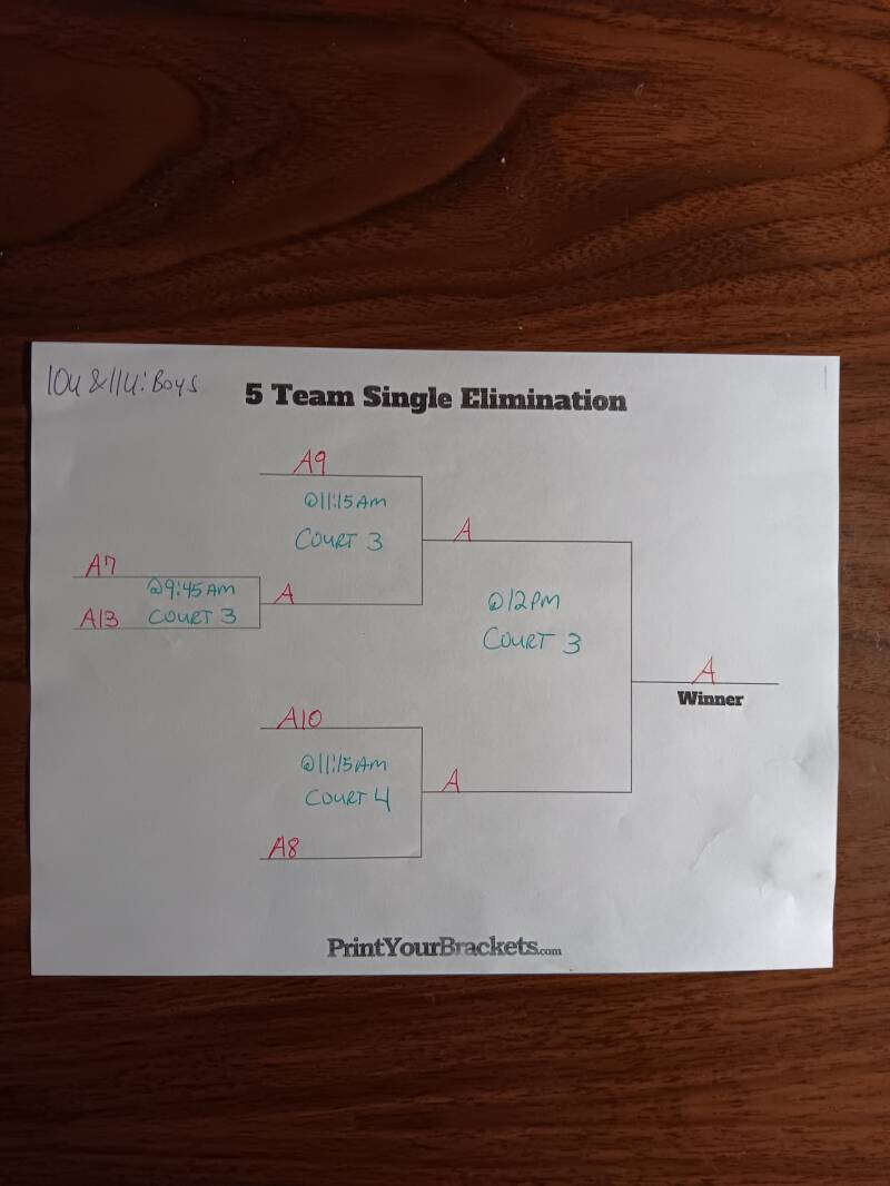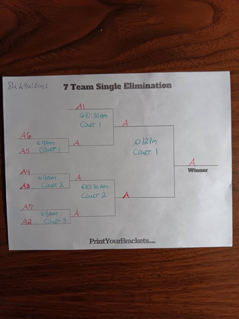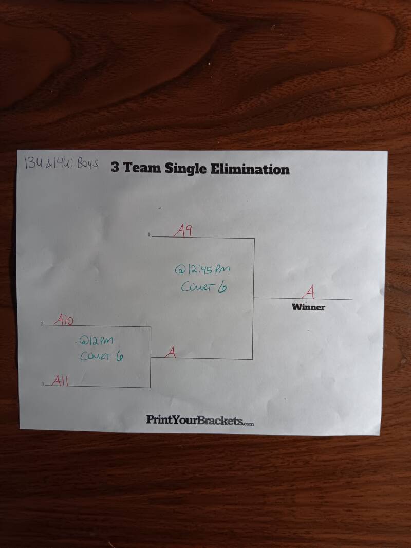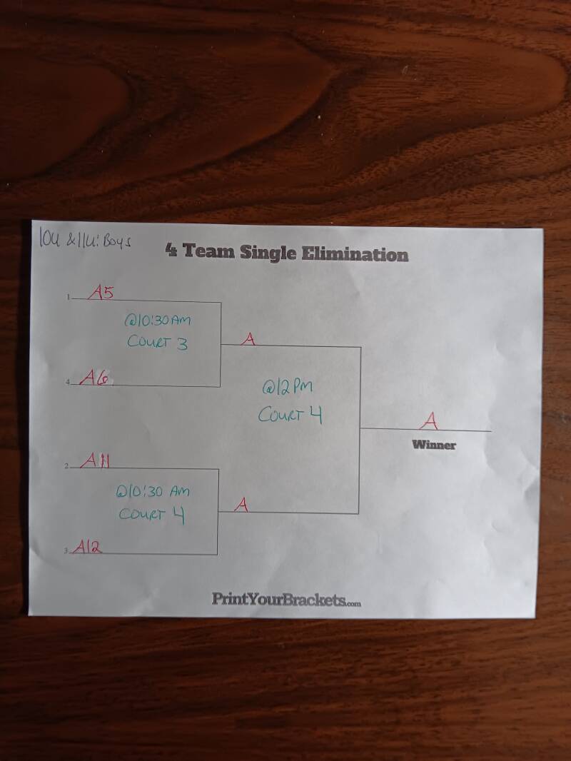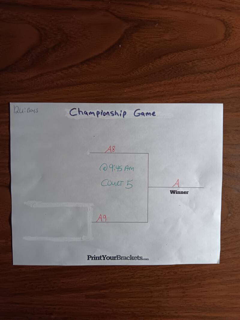 CHAMPIONSHIP SUNDAY GAMES WILL START @9AM SUNDAY AND THE BRACKETS (TOP TEAM IS HOME TEAM) FOR EACH AGE AND GENDER DIVISION WILL BE ON DISPLAY HERE ON OUR WEBSITE AND POSTED ON THE WALL INSIDE THE FACILITY.